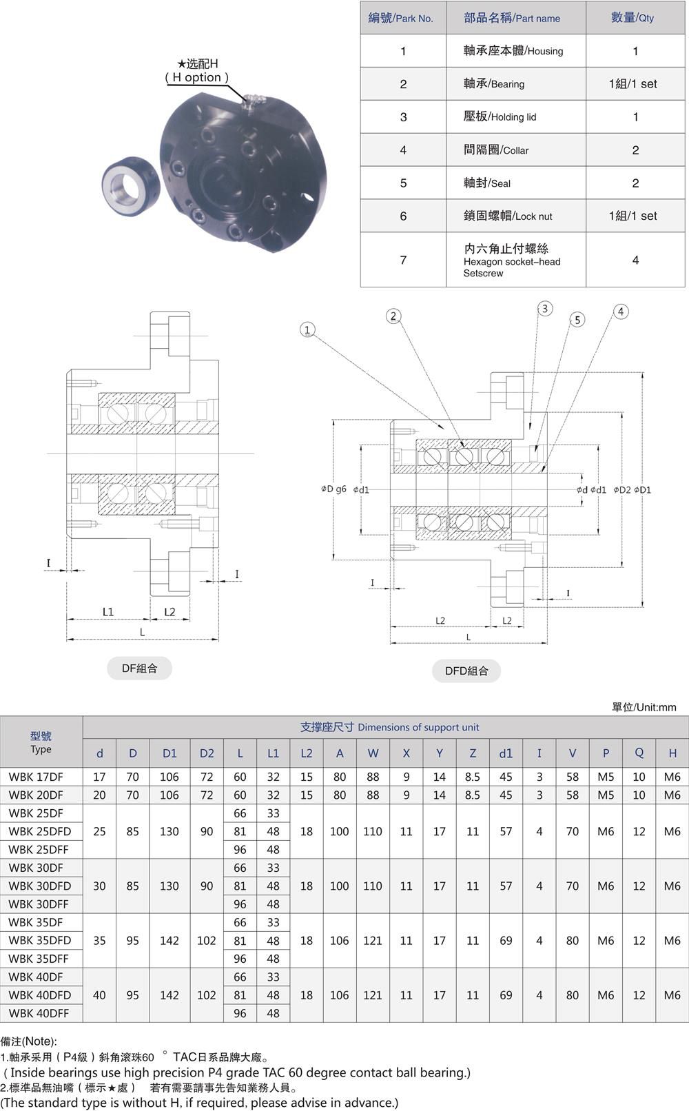 WBK絲桿支撐座簡單的來講是連接絲桿和電機(jī)的軸承固定底座,是正確的標(biāo)準(zhǔn)滾珠螺桿軸端成品,同時(shí)預(yù)備了四種種標(biāo)準(zhǔn)化的支撐單元:EK型、EF型和BK型、BF型。支撐單元固定側(cè)的裝有經(jīng)過預(yù)壓調(diào)整的JIS5級的角接觸球軸承,很多都是小型的,特別是在EK6、EK8兩種超小型式中,則裝有為超小型滾珠螺桿所開發(fā)設(shè)計(jì)的接觸角45°(45度)的超小型角接觸球軸承,為了能獲得高精度、高剛性并且穩(wěn)定自如的回轉(zhuǎn)性能,同時(shí)支撐座的支撐單元也使用了深溝球軸承,支撐單元BK型、EK型的內(nèi)部軸承中裝入了適當(dāng)?shù)匿囋砘鶟櫥?,不易過多,用特殊密封墊圈進(jìn)行密封,可以長期使用,也能直接安裝。