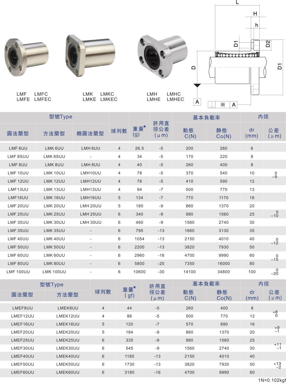 LMF-UU/LMK-UU/LMH-UU直線軸承在鼎翰導軌行業有著很重要的特征,具有耐腐蝕性、輕量化、交換性、中間法蘭型直線軸承低成本的特征,現如今被普遍使用在各類機械設備上,以最有效的工作機能來達到主動化、省力化的最大經濟效益。
