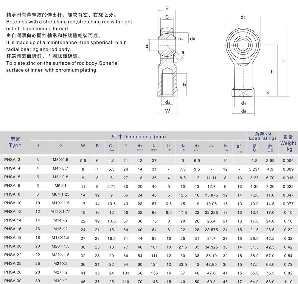 PHSA內(nèi)螺紋自潤滑桿端關(guān)節(jié)軸承是一種有著特殊結(jié)構(gòu)組成的滑動式軸承,它的結(jié)構(gòu)相對比較簡單,滾動軸承要復(fù)雜一點,其主要是由一個有內(nèi)球面的外圈和一個有外球面的內(nèi)圈組成,根據(jù)其不同的類型和結(jié)構(gòu),在工作中能承受較大的負荷,也可以承受徑向負荷、軸向負荷、軸向同時存在的聯(lián)合負荷模式。
