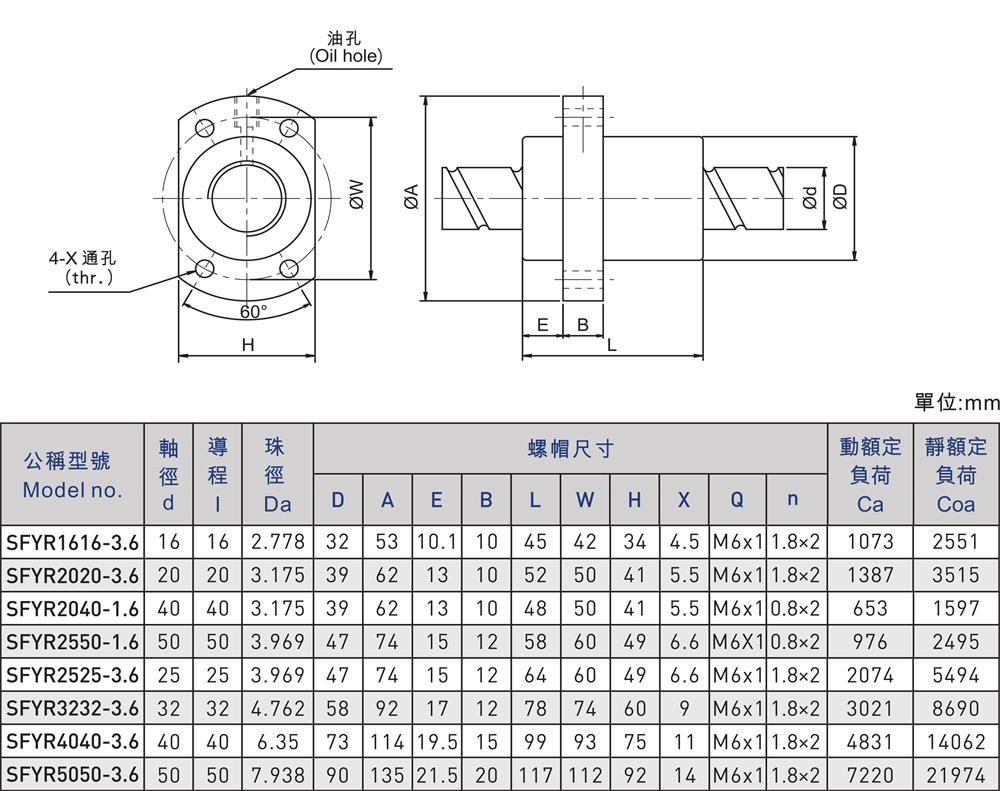 SFY是滾珠螺桿中的一種型號,滾珠螺桿英文名Ballscrew,別名又叫球螺桿、導螺桿,是一種摩擦性小的鋼珠介于螺帽與螺桿之間反復做運動,將傳統螺桿之滑動接觸轉換成滾動接觸,然后再將螺帽內的鋼珠的回轉運動轉為直線運動的傳動機械組件。滾珠螺桿具有定位低污染、精度高、高壽命和可做高速正逆向的傳動及變換傳動等特性,在工業機械制造領域具有重要作用;根據上述特性,滾珠螺桿已成為近來精密科技產業及精密機械產業以及相關行業的定位及測量系統上的重要零組件之一。