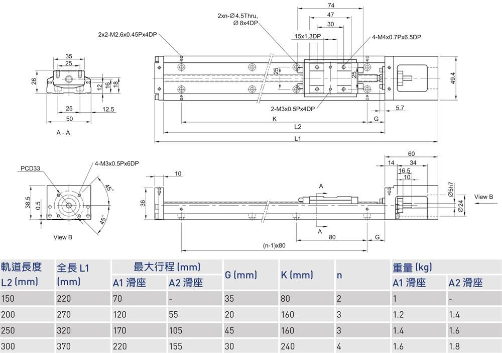 不含護(hù)蓋的KK50精密線性模組是導(dǎo)軌中一個(gè)重要部位,又稱單軸機(jī)械手、電動(dòng)模組、數(shù)控滑臺(tái),在與其它多軸機(jī)械手相比較的情況下,線性模組的功能是很單調(diào)的,太過單一,但是它也是實(shí)現(xiàn)自動(dòng)化的重要產(chǎn)品之一;一般來說,它的設(shè)計(jì)也是有多種選擇,一個(gè)是驅(qū)動(dòng)系統(tǒng),一個(gè)是傳動(dòng)系統(tǒng),還有運(yùn)動(dòng)的精度和負(fù)荷,驅(qū)動(dòng)系統(tǒng)都是有步進(jìn)電機(jī)驅(qū)動(dòng)和伺服電機(jī)驅(qū)動(dòng)的,而傳動(dòng)系統(tǒng)有滾珠絲桿傳動(dòng)和同步帶輪傳動(dòng);其運(yùn)動(dòng)的精度都可以達(dá)到0.01mm(毫米);負(fù)荷根據(jù)選擇,從1KG到50KG都有相應(yīng)機(jī)型。